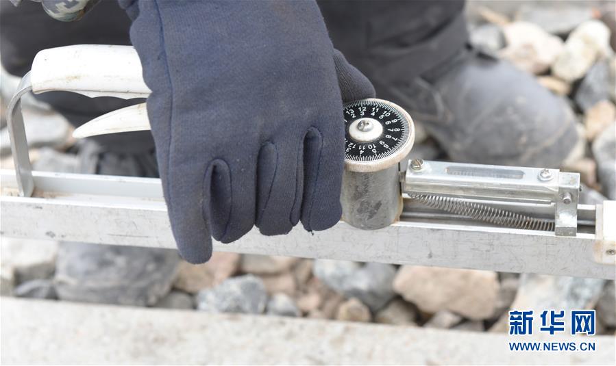 扎西旺堆用道尺检测轨道(1月28日摄)。 新华社记者 周健伟 摄