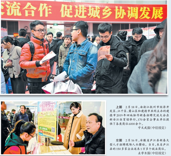为更好地对接供求双方,自2月12日起,人力资源和社会保障部等4部门举办的2019年“春风行动”在全国范围内同步开展。今年的主题是“促进转移就业,助力脱贫攻坚”,重点服务有就业创业意愿的农村劳动力、农村建档立卡贫困劳动力和有用工需求的用人单位,积极促进人岗对接,努力满足企业用工和劳动者就业创业需求。