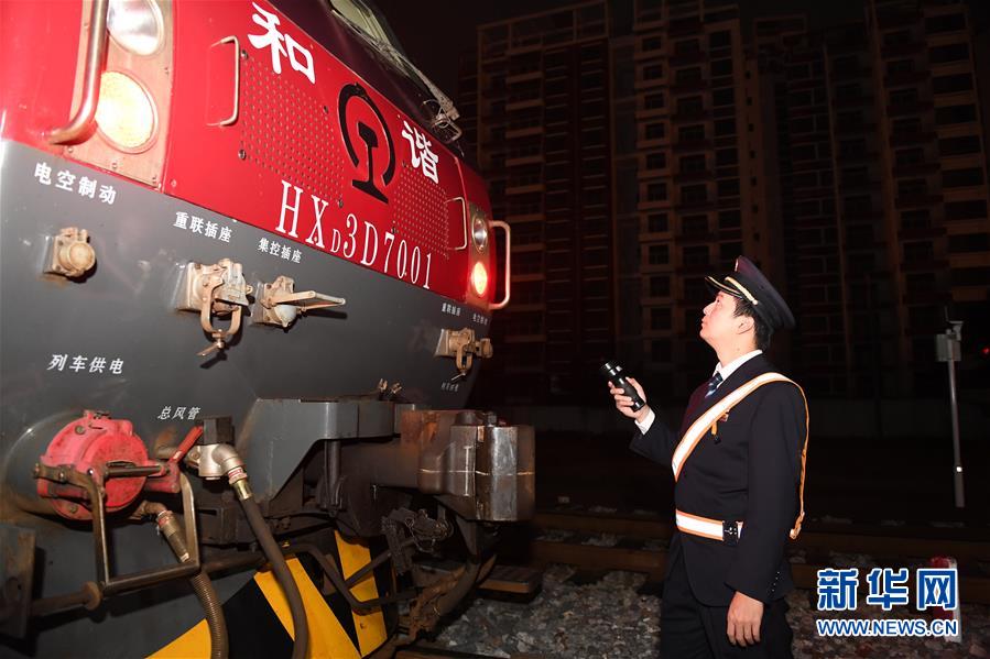 2月21日3时许,周广杰在开行前对“排雷车”外部进行检查。 新华社记者陆波岸摄