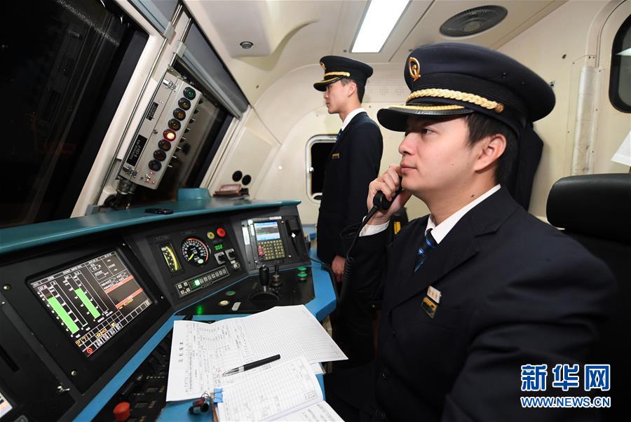 2月21日5时许,在广西北海站,周广杰在“排雷车”完成任务后向列车调度员反馈执行任务情况。 新华社记者陆波岸摄