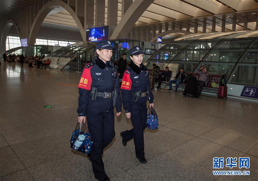 2月23日,在石家庄火车站,张姿(左)和王蕾走在上岗途中。 新华社记者牟宇摄