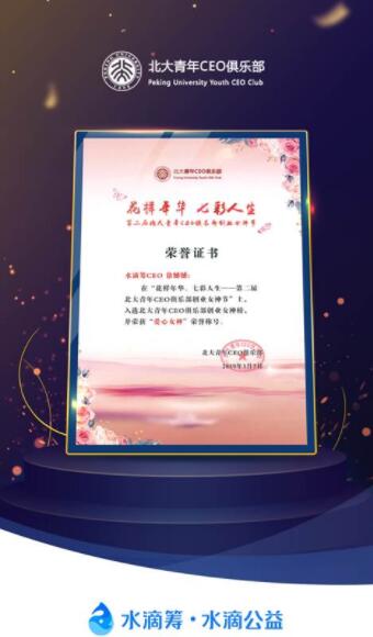 徐憾憾表示,感谢北大青年CEO俱乐部对自己与水滴筹的肯定。未来,水滴筹将继续秉承“让广大中国家庭病有所医”的愿景,坚持以经营信任为宗旨,持续努力去搭建筹款人和捐款人之间信任的桥梁,并继续关注中国公益事业,为讲好公益故事,传播社会正能量贡献力量。