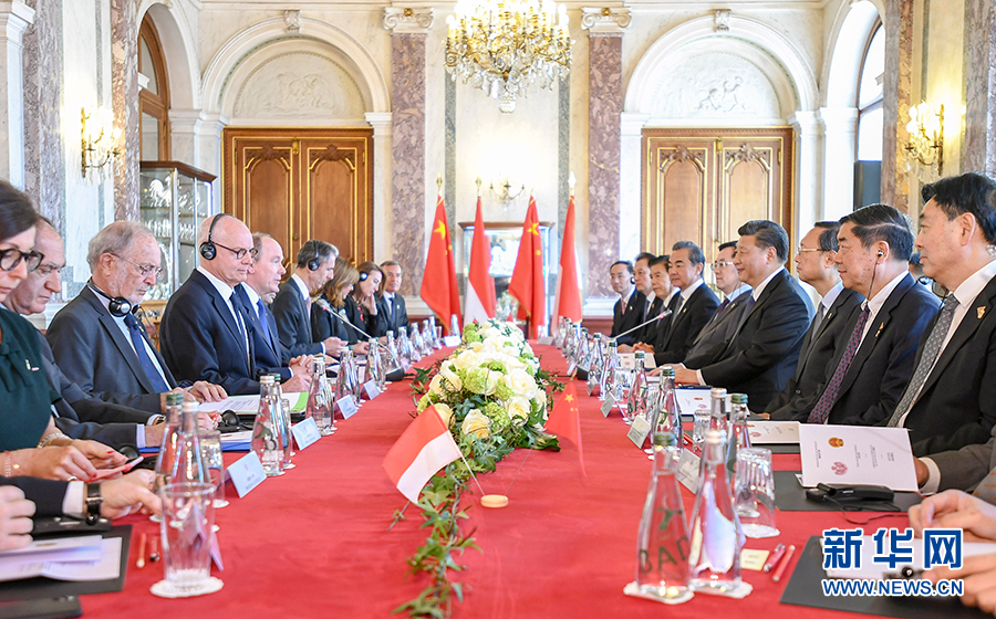 习近平指出,很高兴应亲王殿下邀请对摩纳哥公国进行国事访问。这是中国国家主席首次访问摩纳哥。我们两国相似的民族性格和共同的精神追求,使得我们相知相亲。中摩建交20多年来,双方始终真诚友好、平等相待。当前,中摩双边关系稳步发展,务实合作与时俱进,尤其是在环保、电信、移动支付等新领域走在中欧合作前列。中摩关系已成为不同大小、不同历史文化、不同社会制度国家友好交往的典范。