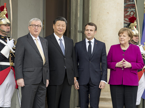 国家主席习近平当地时间26日在巴黎同出席中法全球治理论坛闭幕式的法国总统马克龙、德国总理默克尔和欧盟委员会主席容克举行会晤。