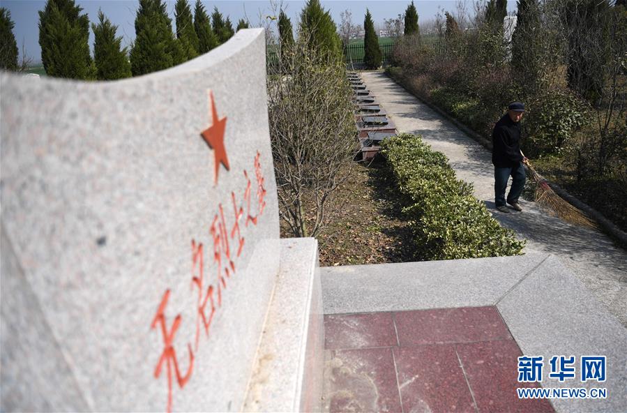 胡兆伦在烈士陵园内清扫道路(3月14日摄)。 新华社记者刘军喜摄
