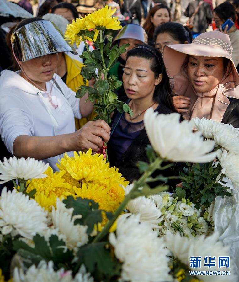 4月2日,群众在西昌市殡仪馆为牺牲的扑火人员献花。 新华社记者 张超群 摄
