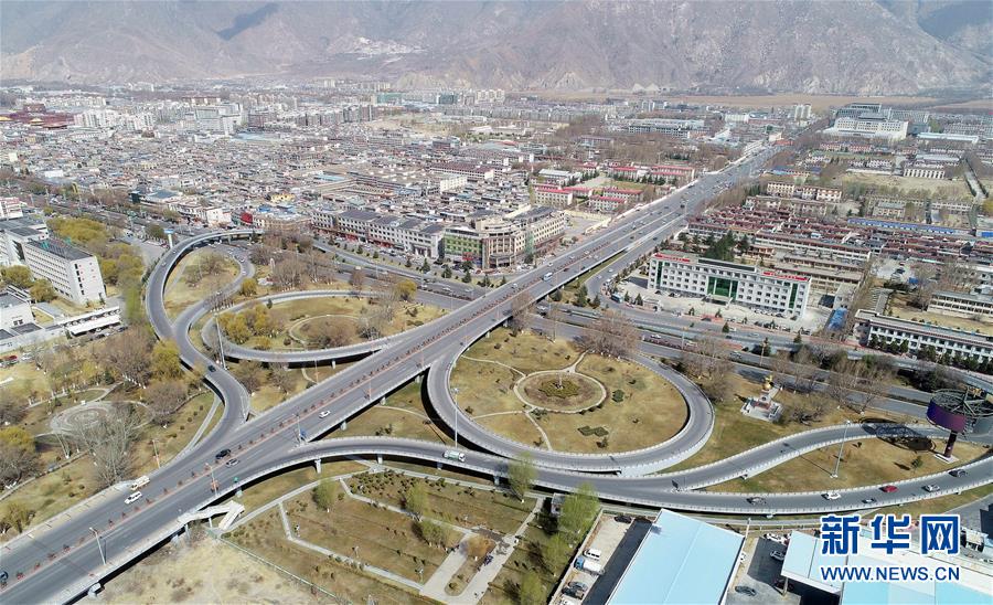 这是建在拉萨市西郊的立交桥(4月3日无人机拍摄)。 新华社记者 晋美多吉 摄