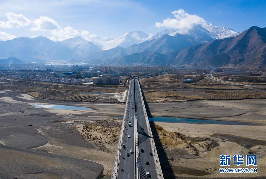 这是拉萨市内公路(4月3日无人机拍摄)。 新华社记者 普布扎西 摄