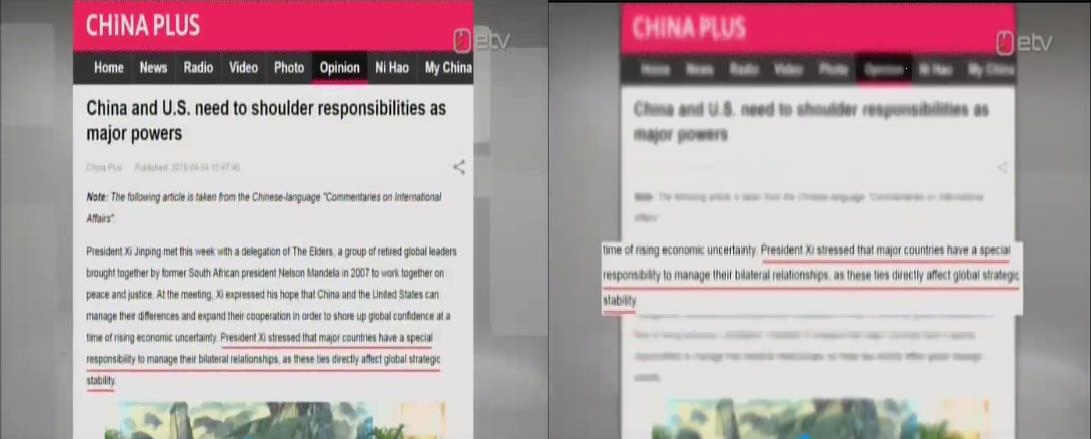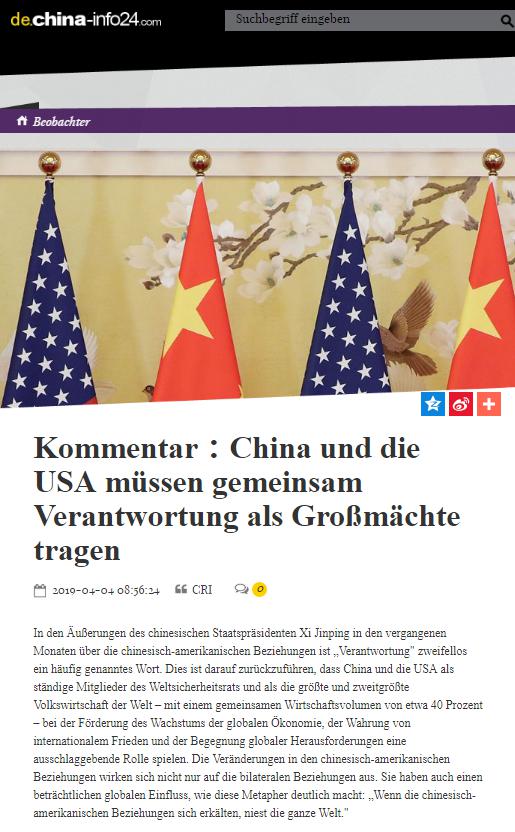 央视网消息:中央广播电视总台“国际锐评”4月4日刊播题为《中美要共同扛起大国的责任》的文章。众多境外媒体和网站转发。