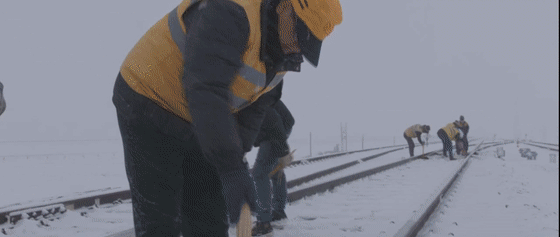 4月份以来,格拉段望昆一带线路持续遭遇强暴风雪。格尔木工务段望昆线路车间在第一时间组织应急除雪队赶往现场,不顾狂风与雪粒的抽打,在零下20多摄氏度的低温下连续奋战,完成线路清理工作。