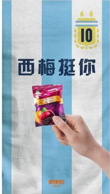 比如2018年的俄罗斯世界杯,来伊份就提前准备好创意策划。一方面,来伊份颠覆性地把购物袋与球衣相结合,打造出一款款别具一格的世界杯球衣购物袋;另一方面,来伊份将零食产品拟人化并赋予不同球队,诚邀大家参与世界杯球队零食PK,选球队瓜分7700万红包。而流量小生胡一天的加盟,更是引爆 #胡一天陪你过足瘾#话题讨论,粉丝经济效果凸显。此外,将产品“西梅”与足球明星“梅西”相结合,也让来伊份收获了一波梅西粉。