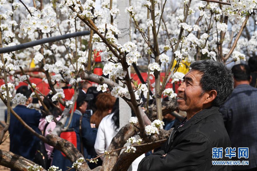 4月14日,人们在隰县午城镇下阳德村的梨园里赏花。 近日,山西省临汾市隰县举办了第九届玉露香梨花节,吸引了众多游人前来观赏。近年来,隰县把玉露香梨作为经济发展的支柱产业,全县种植面积达23万亩。 新华社记者 杨晨光 摄