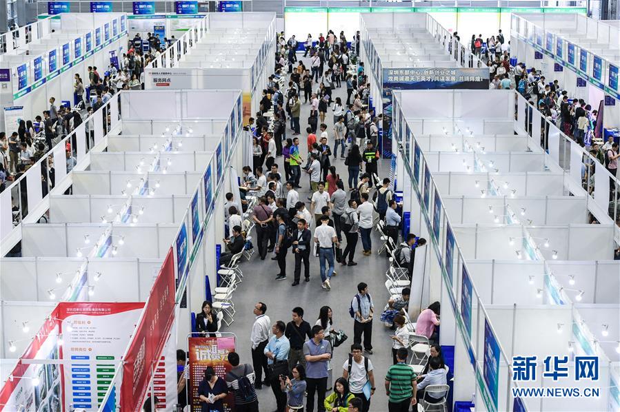 这是4月14日拍摄的第十七届中国国际人才交流大会招聘会现场。当日,第十七届中国国际人才交流大会在深圳启幕,来自50多个国家和地区的4000多家专业机构和组织、4万余名海内外政府代表、专家学者、高端人才应邀参展参会。 新华社记者 毛思倩 摄
