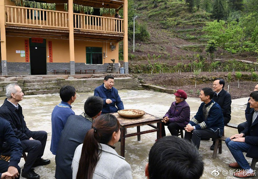 4月15日,习近平总书记赴重庆考察调研。一下飞机,他就转乘火车、汽车前往石柱土家族自治县中益乡小学、华溪村,深入农户家中和田间地头,实地了解脱贫攻坚工作进展和解决“两不愁三保障”突出问题情况。