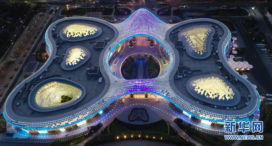 位于海南省三亚市海棠湾的三亚国际免税城夜景(4月13日无人机拍摄)。新华社记者 杨冠宇 摄