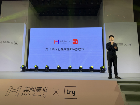 trytry集团联合创始人兼trytry及美图美妆合伙人、新零售总经理欧泽超进行“trytry414勇敢节”进行分享