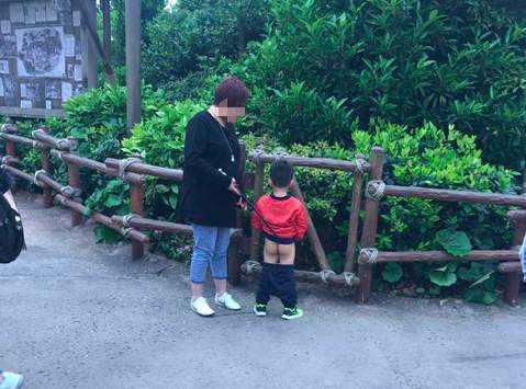 迪士尼乐园对孩子们有着天然的吸引力。园区里家庭出游的自然不少,小朋友们的“童子尿喷泉雕塑”也成了园区一景,我们就碰到了至少三次这样的场景。当然,有些家长考虑得稍微周全,孩子实在忍不住就垫上垃圾袋,然后回收。或者干脆就给小孩子穿上了尿不湿。问及对这类情况的处理,园区的员工表示,“等他们走了,我们再收拾。”