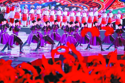 2019年5月15日,亚洲文化嘉年华活动在北京“鸟巢”举行。图为风情舞团《火之激情》演出现场。新华社发