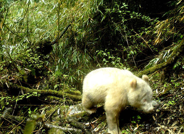四川卧龙国家级自然保护区管理局发布的全球首张白色大熊猫照片。