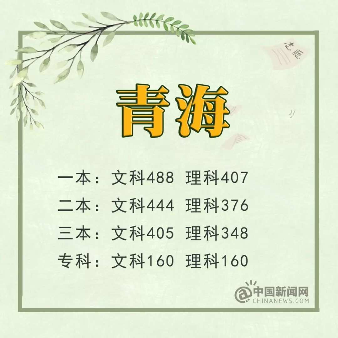 青海:一本文科488分 理科407分