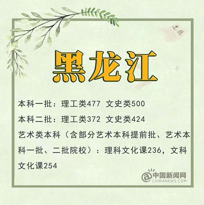 黑龙江:文科一本500分 理科一本477分