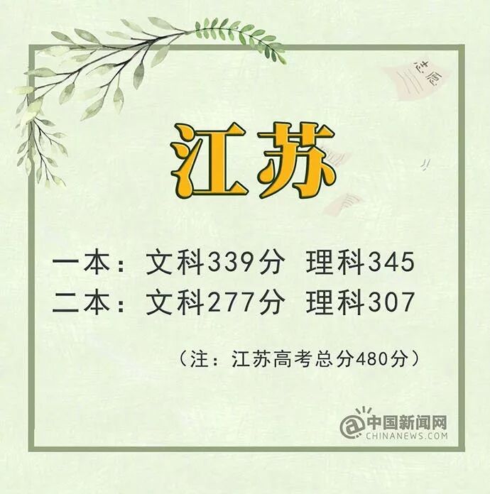江苏:文科一本339分 理科一本345分