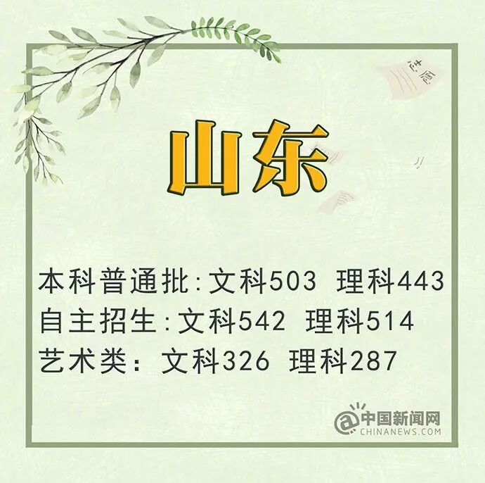 山东:文科503分 理科443分