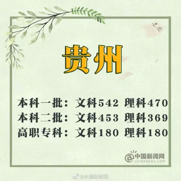 贵州:一本理工类470分 文史类542分