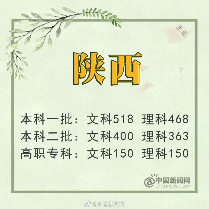 陕西:本科一批文史518分 理工468分