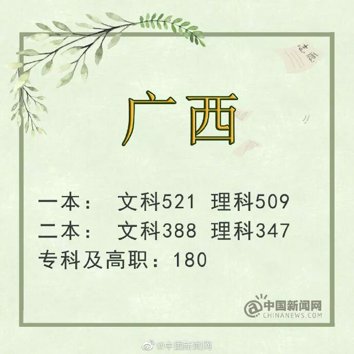 广西:一本理工509分 文史521分