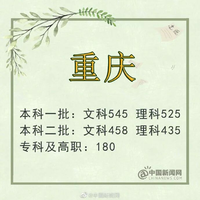 重庆:本科一批文史545分 理工525分