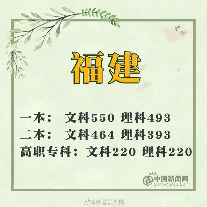 福建:文科一本线550分 理科一本线493分