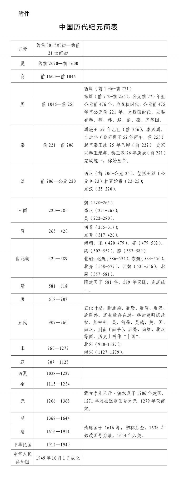 附件:中国历代纪元简表