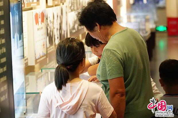 白凤菊带着孙子孙女参观焦裕禄展览馆。 中国网 杨佳 摄影