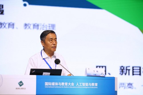 中国教育技术协会副会长兼秘书长丁新在国际媒体与教育大会上发表主旨演讲