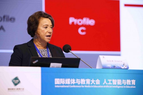 知名教育学和心理学教授、美国南加州大学美国心理学协会教育心理学分会主席Gale M. Sinatra在国际媒体与教育大会上发表主旨演讲