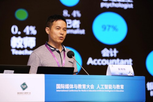 科大讯飞联合创始人、执行总裁吴晓如在国际媒体与教育大会上发表主旨演讲