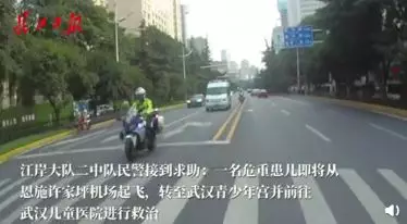 7月20日,武汉江岸大队二中队民警接到求助:一名危重患儿即将从恩施起飞,前往武汉儿童医院进行救治。