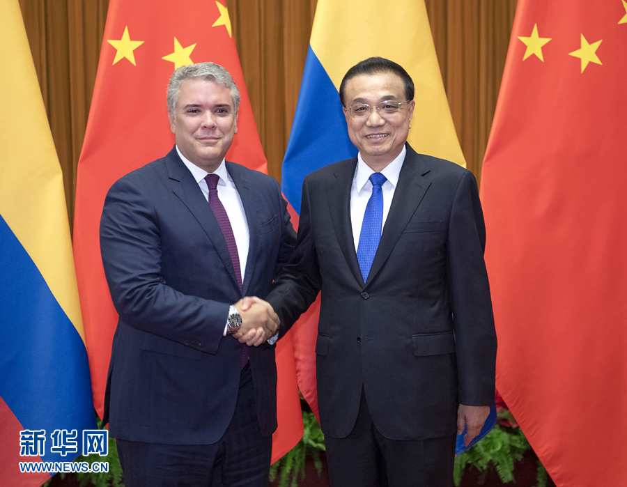 李克强表示,哥伦比亚是中国在拉美地区的重要合作伙伴。建交39年来,两国关系保持健康稳定发展,务实合作持续加强,广泛惠及双方人民。习近平主席将同总统先生举行会谈,共同规划两国关系未来发展。中方愿继续同哥方巩固政治互信,加强发展战略对接,深化各领域务实合作,推动两国关系迈上新台阶。