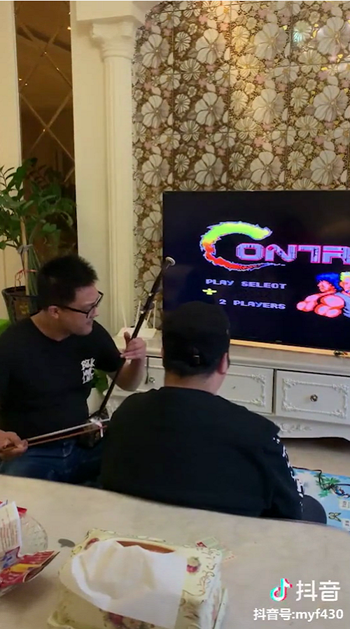 他幽默地将二胡的乐曲融入到生活的每一个细节之中,比如朋友打“魂斗罗”没有声音,@二饼胡拉 找出二胡根据“战斗”激烈场面进行配乐。魂斗罗混搭二胡,这个脑洞令评论区网友拜服大神。