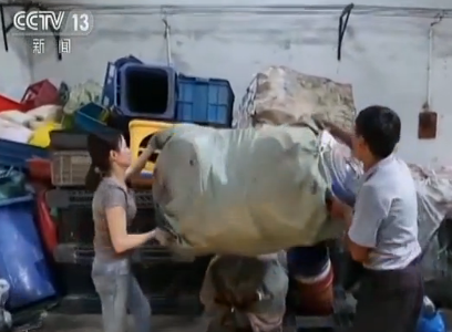 早上六点多,在苏州市相城区的这家废品回收站里,月月和家人已经开始了一天的忙碌,他们正在把打包好的废旧塑料瓶装上卡车,稍后会运送到统一的处理中心。