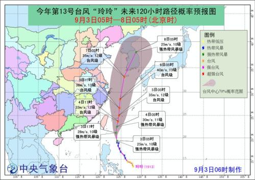 今年第13号台风“玲玲”已于今天(3日)早晨由热带风暴级加强为强热带风暴级,早晨5点钟其中心位于台湾鹅銮鼻东南方约435公里的西北太平洋洋面上,就是北纬19.3度、东经124.0度,中心附近最大风力10级(25米/秒),中心最低气压985百帕,七级风圈半径180-260公里。