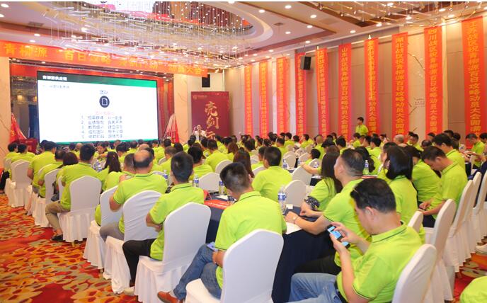 随后举行的是授旗仪式和百日攻略市场销售扶持政策讲解。承运中心总裁姚总以百日攻略战斗小组总指挥的身份,庄重为湖南、河南、山东、河北、湖北、福建、广东、天津、江西、江苏、四川、重庆、东北等各主要战区的经销商代表授予“战旗”;各大战区经销商代表现场立下“军令状”并宣读誓约,伴随着响亮的口号,各个战区团队士气高昂,将现场气氛推向一个高潮。