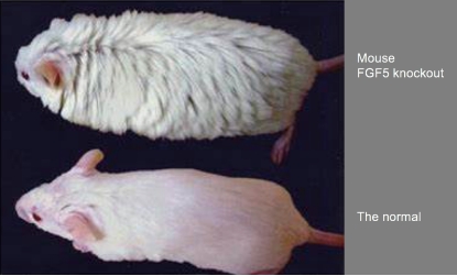 早在1994年,加利福尼亚大学遗传学系的赫伯特博士就在《细胞》杂志上发文,提供了FGF5能抑制毛发生长的研究证据。在实验中,他们将小鼠的FGF5基因靶向敲除,结果实验体长出了异常长的毛发。