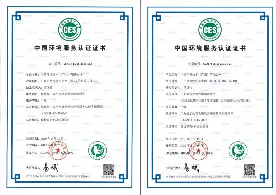 近日,中信环境技术(广州)有限公司获得两项中国环境服务认证,分别是工业废水处理设施运营服务(工业园区集中式废水处理设施、纺织染整废水处理设施)一级证书和城镇集中式污水处理设施运营服务二级证书。这是对中信环境技术在工业废水、市政污水治理领域运营服务能力的充分认可,也将进一步提升公司在行业内的竞争优势,为公司在水环境综合治理领域实现高质量发展奠定坚实的基础。