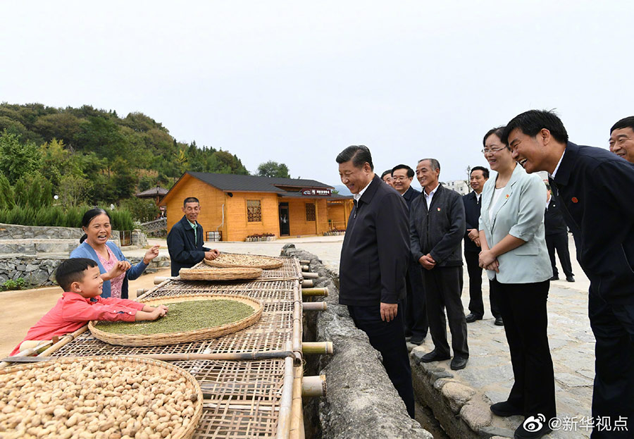 16日下午,正在河南考察的习近平总书记来到新县田铺乡田铺大塆,沿着曲折别致的村间小路,先后走进“匠心工坊”手工艺品店、“老家寒舍”民宿店、“不秋草”竹编工艺店等创客小店,实地了解这里打造创客小镇、发展特色旅游、推动乡村振兴情况,还自己付钱买了几双手工制作的富有当地特色的鞋垫。习近平指出,搞乡村振兴,不是说都大拆大建,而是要把这些别具风格的传统村落改造好。要实现生活设施便利化、现代化,能够洗上热水澡,村容村貌要整洁优美。(文字记者:张晓松、朱基钗 摄影记者:谢环驰、鞠鹏)