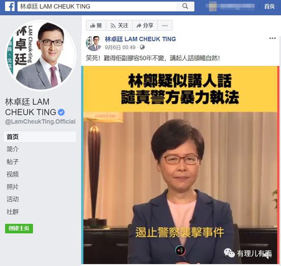 9月6日,林卓廷在脸书发布一段关于特首林郑月娥“批评”警队的视频,实则为篡改9月4日林郑的电视讲话内容。该视频传播后,被人发现口型与发音明显不符,谣言不攻自破。可见,林卓廷为了搞乱香港,竟然公开造谣、毫无底线!