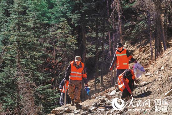 鲁朗镇护林员在鲁朗林海景区进行巡山作业。刘东君 摄