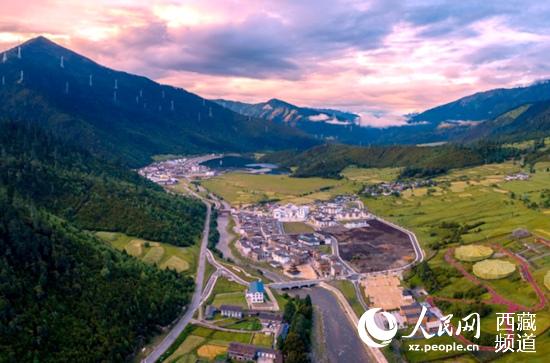 林海脚下的鲁朗镇。鲁朗景区管理委员会提供