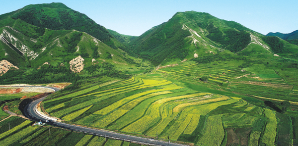 宁夏回族自治区固原市隆德县观庄乡前庄村道路两旁风景如画。新华社记者 王 鹏摄
